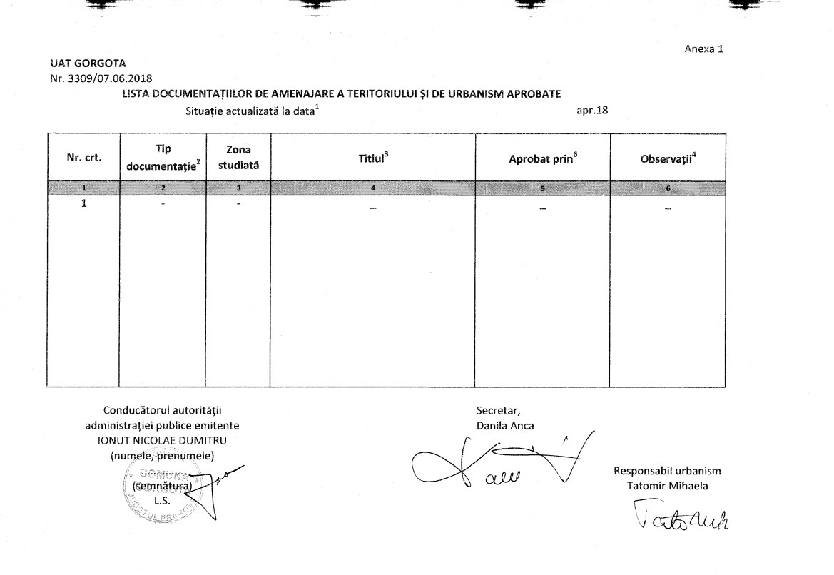 ➠ Lista documentațiilor de amenajare a teritoriului și de urbanism aprobate-Mai 2018